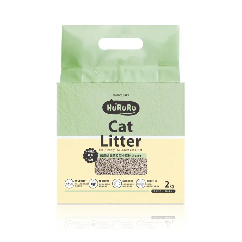 Hururu| 台灣品牌 低塵6道工法 天然茶香 長效除臭|茶葉除臭低塵顆粒型豆腐砂|茶香乾爽貓砂 (2kg)